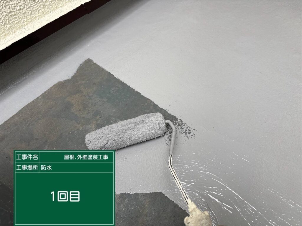 次に、防水材の1層目(下塗り+主材)を施工します。
