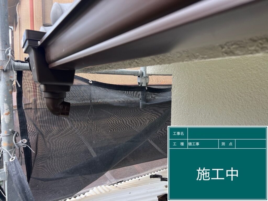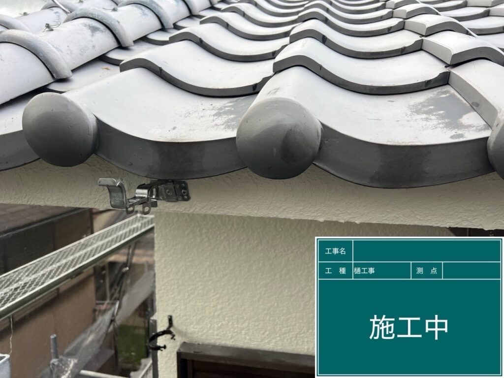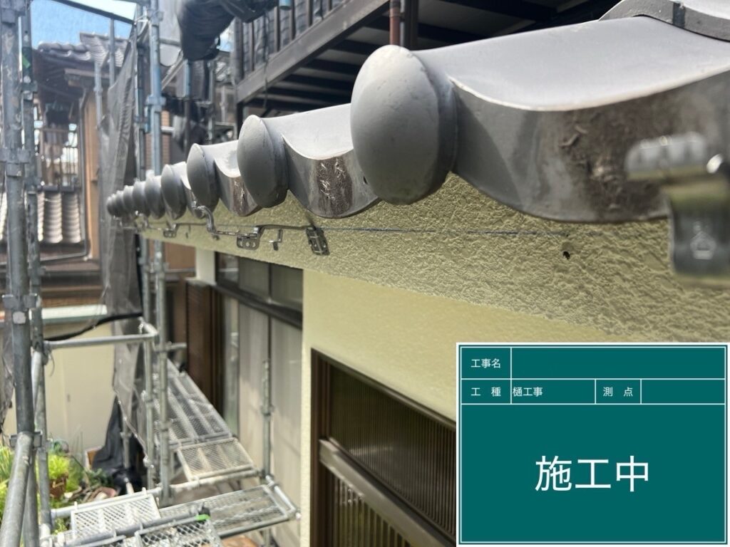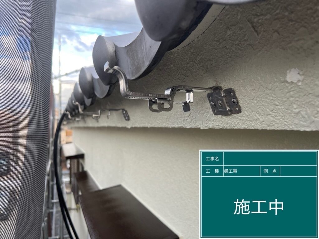 既存雨樋の撤去が完了した後は、新しい雨樋の設置作業に移ります。
