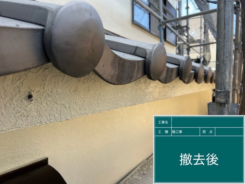劣化が進んでいた既存の雨樋を撤去する作業を行いました。
