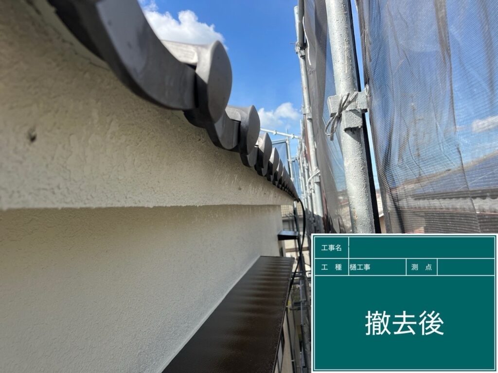 樋は長年の紫外線や風雨の影響で硬くなっているため、無理に外すと破風板(はふいた)や鼻隠しを傷付ける恐れがあります。