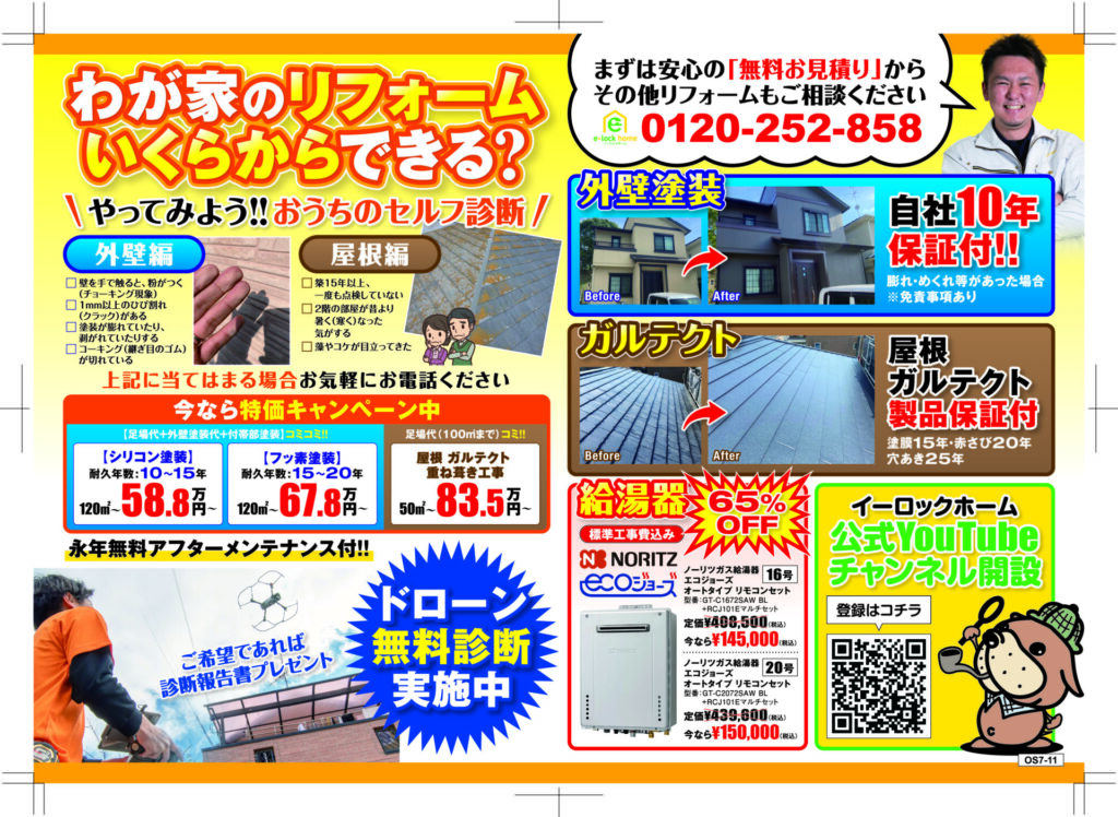 イーロックホームでは ドローン無料診断 も行っていますので、安全&確実に状態をチェックできます。
